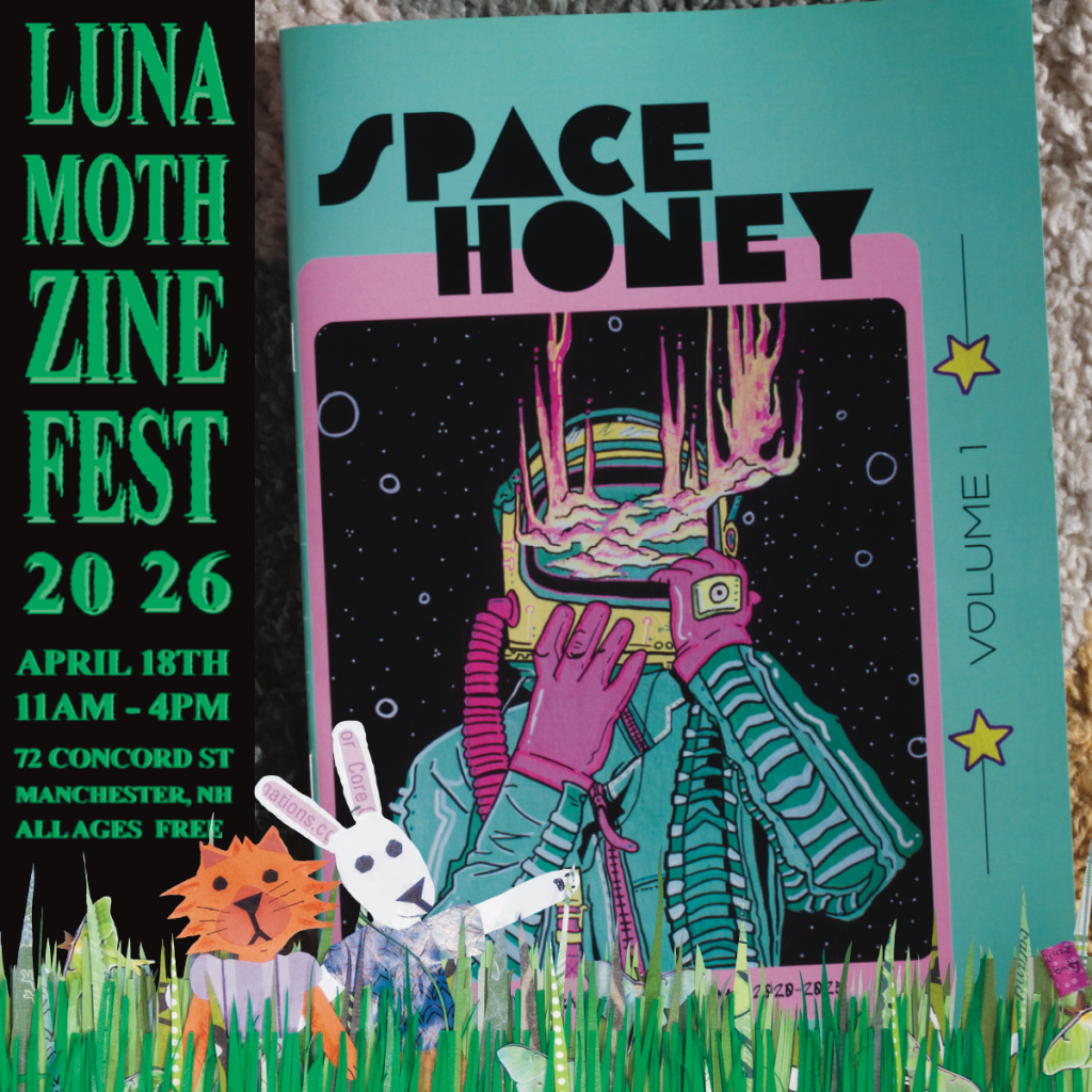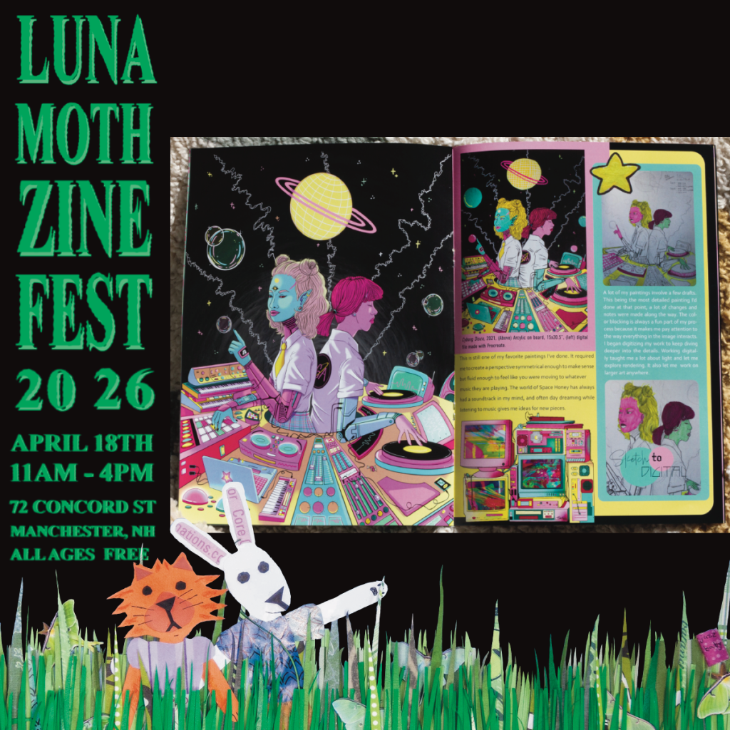 The Little Astronaut is an illustrator and multimedia artist who has created the imagined cyberpunk world of Space Honey. They use an eclectic, retro futuristic style to give vignettes into some character’s in the larger world.