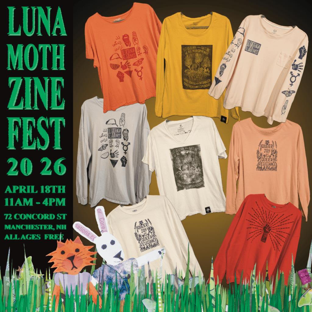 Arte Por Un Mundo Cuir, which translates to Art For A Queer World from Spanish, is about creating art that inspires us to build the world we need and desire. Art is powerful and in a world filled with inequity, genocide, transphobia, it is sometimes hard to build because we focus on fighting back against oppressive systems. My art inspires us to imagine the world we are fighting for and reminds us to build it, raise it, grow it together. Arte Por Un Mundo Cuir began with a Free Palestine print I made in a block printing workshop and another print that said Queer the World, Build It Together. Those two prints and being in community have inspired a range of other prints, patches, tshirts, zines, stickers, buttons, and more.