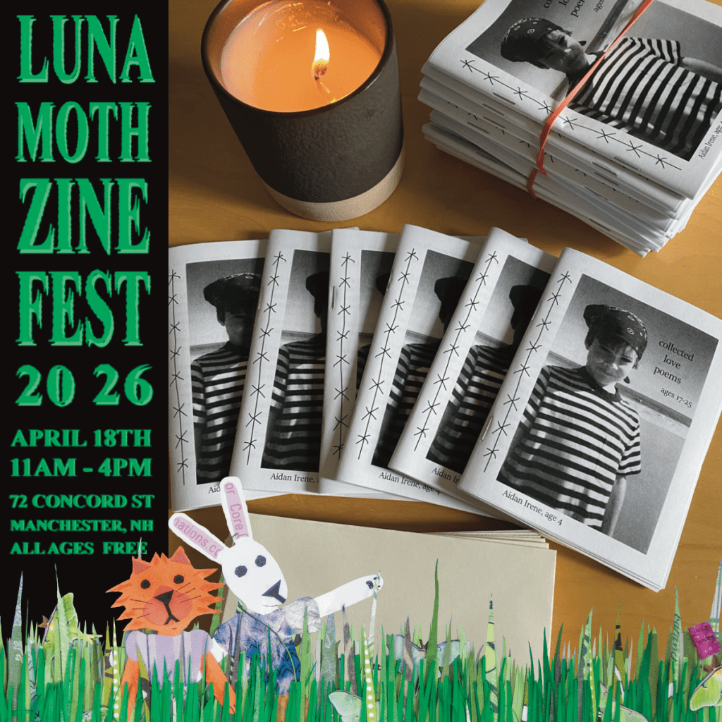 Aidan Mabey (most popular boy) is a tender-hearted zine maker from Portland Maine. They make zines about things that make them ~feel~ including (but not limited to) sending snail mail, the elusive and charismatic American eel, picking sour cherries, taking film photos, writing sweet love poems, and daydreaming about the desert expanse of far West Texas.
